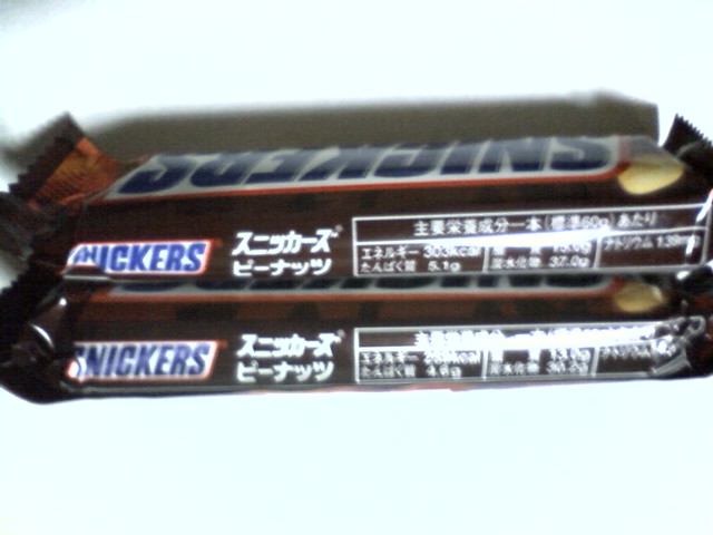 どうも、ピロシャです。 スニッカーズというのは一本食べたら腹一杯になるお菓子です。 何故スニッカーズの話が出るかというと、最近スニッカーズのテレビコマーシャルを見たんです。 家のゴミ箱から今まで食べたスニッカーズの袋を取り出して見てみると確かに「原産国名:中国」と書いてあります。